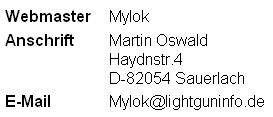 ![]() Lightguninfo.de ist eine reine Fanseite, bitte beachtet daher die folgenden Punkte: 1. Inhalt des Onlineangebotes Der Autor übernimmt keinerlei Gewähr für die Aktualität, Korrektheit, Vollständigkeit oder Qualität der bereitgestellten Informationen. Haftungsansprüche gegen den Autor, welche sich auf Schäden materieller oder ideeller Art beziehen, die durch die Nutzung oder Nichtnutzung der dargebotenen Informationen bzw. durch die Nutzung fehlerhafter und unvollständiger Informationen verursacht wurden, sind grundsätzlich ausgeschlossen, sofern seitens des Autors kein nachweislich vorsätzliches oder grob fahrlässiges Verschulden vorliegt. Alle Angebote sind freibleibend und unverbindlich. Der Autor behält es sich ausdrücklich vor, Teile der Seiten oder das gesamte Angebot ohne gesonderte Ankündigung zu verändern, zu ergänzen, zu löschen oder die Veröffentlichung zeitweise oder endgültig einzustellen. 2. Verweise und Links Bei direkten oder indirekten Verweisen auf fremde Webseiten ("Hyperlinks"), die außerhalb des Verantwortungsbereiches des Autors liegen, würde eine Haftungsverpflichtung ausschließlich in dem Fall in Kraft treten, in dem der Autor von den Inhalten Kenntnis hat und es ihm technisch möglich und zumutbar wäre, die Nutzung im Falle rechtswidriger Inhalte zu verhindern. Der Autor erklärt hiermit ausdrücklich, dass zum Zeitpunkt der Linksetzung keine illegalen Inhalte auf den zu verlinkenden Seiten erkennbar waren. Auf die aktuelle und zukünftige Gestaltung, die Inhalte oder die Urheberschaft der verlinkten/verknüpften Seiten hat der Autor keinerlei Einfluss. Deshalb distanziert er sich hiermit ausdrücklich von allen Inhalten aller verlinkten /verknüpften Seiten, die nach der Linksetzung verändert wurden. Diese Feststellung gilt für alle innerhalb des eigenen Internetangebotes gesetzten Links und Verweise sowie für Fremdeinträge in vom Autor eingerichteten Gästebüchern, Diskussionsforen, Linkverzeichnissen, Mailinglisten und in allen anderen Formen von Datenbanken, auf deren Inhalt externe Schreibzugriffe möglich sind. Für illegale, fehlerhafte oder unvollständige Inhalte und insbesondere für Schäden, die aus der Nutzung oder Nichtnutzung solcherart dargebotener Informationen entstehen, haftet allein der Anbieter der Seite, auf welche verwiesen wurde, nicht derjenige, der über Links auf die jeweilige Veröffentlichung lediglich verweist. 3. Urheber- und Kennzeichenrecht Der Autor ist bestrebt, in allen Publikationen die Urheberrechte der verwendeten Bilder, Grafiken, Tondokumente, Videosequenzen und Texte zu beachten, von ihm selbst erstellte Bilder, Grafiken, Tondokumente, Videosequenzen und Texte zu nutzen oder auf lizenzfreie Grafiken, Tondokumente, Videosequenzen und Texte zurückzugreifen. Alle innerhalb des Internetangebotes genannten und ggf. durch Dritte geschützten Marken- und Warenzeichen unterliegen uneingeschränkt den Bestimmungen des jeweils gültigen Kennzeichenrechts und den Besitzrechten der jeweiligen eingetragenen Eigentümer. Allein aufgrund der bloßen Nennung ist nicht der Schluss zu ziehen, dass Markenzeichen nicht durch Rechte Dritter geschützt sind! Das Copyright für veröffentlichte, vom Autor selbst erstellte Objekte bleibt allein beim Autor der Seiten. Eine Vervielfältigung oder Verwendung solcher Grafiken, Tondokumente, Videosequenzen und Texte in anderen elektronischen oder gedruckten Publikationen ist ohne ausdrückliche Zustimmung des Autors nicht gestattet. 4. Datenschutz Sofern innerhalb des Internetangebotes die Möglichkeit zur Eingabe persönlicher oder geschäftlicher Daten (Emailadressen, Namen, Anschriften) besteht, so erfolgt die Preisgabe dieser Daten seitens des Nutzers auf ausdrücklich freiwilliger Basis. Die Inanspruchnahme und Bezahlung aller angebotenen Dienste ist - soweit technisch möglich und zumutbar - auch ohne Angabe solcher Daten bzw. unter Angabe anonymisierter Daten oder eines Pseudonyms gestattet. Die Nutzung der im Rahmen des Impressums oder vergleichbarer Angaben veröffentlichten Kontaktdaten wie Postanschriften, Telefon- und Faxnummern sowie Emailadressen durch Dritte zur Übersendung von nicht ausdrücklich angeforderten Informationen ist nicht gestattet. Rechtliche Schritte gegen die Versender von sogenannten Spam-Mails bei Verstössen gegen dieses Verbot sind ausdrücklich vorbehalten. 5. Rechtswirksamkeit dieses Haftungsausschlusses Dieser Haftungsausschluss ist als Teil des Internetangebotes zu betrachten, von dem aus auf diese Seite verwiesen wurde. Sofern Teile oder einzelne Formulierungen dieses Textes der geltenden Rechtslage nicht, nicht mehr oder nicht vollständig entsprechen sollten, bleiben die übrigen Teile des Dokumentes in ihrem Inhalt und ihrer Gültigkeit davon unberührt. |