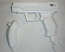 Warum das, werden sich jetzt manche fragen? Nun, der Grund ist einfach: dadurch das bei diesen Lightguns keine besondere Technik zum Einsatz kommt und man lediglich die Wiimote einsteckt, kann man hier hinsichtlich der Präzision keine Aussage treffen. Es geht immer darum wie genau die Wiimote arbeitet, wobei bei allen bisherigen Spielen für die Wii ohnehin das Fadenkreuz am Bildschirm nicht ausblendbar ist. Doch lange Rede kurzer Sinn, bei allen Lightgun-Reviews für die Wii werdet ihr bei der Präzision 0 Punkte finden aus eben diesem Grund. Nun zum eigentlichen Test der Wii-Gun von Big Ben. Als Vorbild diente hier ganz klar die P99 der deutschen Waffenschmiede Walther. Diese Idee ist nicht ganz neu, Big Ben selbst hat bereits für die PS2 eine Walther P99 Lightgun herausgebracht (-> Test). Und auch Konkurrent Logic3 setzt bei seinen beiden hervorragenden Guns P99L für PS2 (-> Test) und X99L für die XBox (-> Test) auf das Design von James Bonds Dienstwaffe. Diese ganze Popularität hat natürlich einen Grund, denn die Knarre liegt super in der Hand. Wie auch beim Wii Zapper setzt man die Wiimote vorne am Lauf ein, damit der Sensor nach vorne hin Richtung TV zeigt. Drückt man den Abzug, wird der B-Button betätigt. Dies funktioniert gut, nur ist der Abzug beim Nintendo Gerät doch etwas ausgereifter und feiner. Dadurch geht schnelles triggern nicht so leicht von der Hand wie beim Wii Zapper. Der NunChuk wird am Ende des Griffs eingesteckt und wird dann mit der anderen Hand gehalten. Mir ist besonders beim spielen von Resident Evil: Umbrella Chronicles aufgefallen wie gut das hinhaut! Man kann locker den NunChuk zum nachladen schütteln oder die Pistole auf der Hand ablegen für ruhigeres zielen. Ansonsten lässt sich nicht mehr all zu viel über die Wii-Gun sagen. Sie ist auf jeden Fall eine sinnvolle Ergänzung zum Zapper, da sie für bestimmte Spiele einfach besser geeignet ist. Entweder weil sie mehr der Waffe im Spiel entspricht oder aber weil sie einfach vom Handling her wesentlich komfortabler ist.