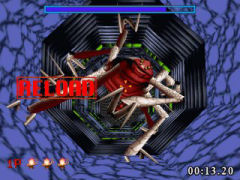 ![]() Bei House of the Dead wird nicht mit Blut gespart, was der BPjS eine Indizierung wert war! Die Story des ersten Teils erinnert ein wenig an Resident Evil. Als Spezialagent müsst ihr die Tätigkeiten eines Wissenschafters untersuchen, der in einem streng geheimen Labor sein Unwesen treibt. Während die Forschungseinrichtungen in einem alten Haus untergebracht sind, sind deren Bewohner alles andere als normal. Denn die Experimente die an dem Ort durchgeführt wurden und werden, dienen nur einem Zweck: der Entwicklung von äußerst resistenten biologischen Waffen. Meistens kommen diese in Menschenform daher, ihr bekommt es aber auch mit Spinnen, Würmern und Fledermäusen zu tun. Um einige verbleibende Wissenschaftler aus dem Horror-Haus zu retten, müsst ihr euch durch das Anwesen kämpfen und genau diese Kreaturen zur Hölle schicken. Und das geschieht natürlich mit eurer treuen Pistole. Upgrades der Waffe oder andere Schießeisen gibt es keine. ![]() Der dritte Endgegner ist eine fette Spinne, die ihr durch ein Röhrensystem scheucht (oder sie euch?). Und diese Extraleben sind auch bitternötig, denn The House of the Dead ist kein Spaziergang. ![]() Die verbliebenen Wissenschaftler müssen an so mancher Stelle geschützt werden. Da ist es gut einen Mitstreiter dabei zu haben. Mit einem zweiten Spieler erleichtert ihr euch die Sache nämlich spürbar. Zu zweit spielbar sind der Arcademodus sowie der so genannte Saturn Modus. Dieser ist identisch zu Ersterem, nur das ihr vorher euer Alter-Ego auswählen dürft. Die Personen die zur Wahl stehen unterscheiden sich in punkto Durchschlagskraft, Magazinkapazität sowie Nachladegeschwindigkeit. Zum Training oder Zeitvertrieb lädt euch zuletzt noch der Bossmodus ein. In diesem tretet ihr wahlweise gegen einen der Endgegner an oder handelt sie alle an einem Stück ab. Dabei wird eure Zeit gestoppt, die Bestzeiten werden gespeichert. Sound und Musik tragen teilweise zur beklemmenden Atmosphäre bei; Zombies schreien, Kettensägen knattern und Pistolen knallen überzeugend. ![]() Für den letzten Boss liegen keinerlei Information über seine Schwachstellen vor! The House of the Dead stellt einen weiteren Meilenstein des Lightgun Genres dar. Der packende Streifzug durch immer wieder neue Ecken des Hauses begeistert immer wieder, das Spielgefühl des ersten Teils ist innerhalb der Serie bisher unerreicht. Man darf aber den recht hohen Schwierigkeitsgrad nicht außer Acht lassen, der ungeübte Schützen oftmals zur Verzweiflung treiben dürfte. Packt euch daher einen Freund und legt zu zweit los, dann macht der Titel nochmal soviel Spaß!