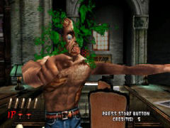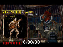 ![]() Vor jeder Konfrontation mit einem Obermotz werdet ihr über dessen Schwachstelle informiert. Die Konsequenz daraus bedeutet in erster Linie einmal mehr optische Abwechslung. Von düsteren Höhlen, vorbei an alten Häusern bis hin zu Schifffahrten auf Wasserkanälen wird euch einiges geboten. Dabei seid ihr noch mehr, als in Teil 1, dazu angehalten, die umherirrenden Zivilisten zu retten. Leider sind davon aber nicht mehr viele übrig, was bleibt sind mutierte Zombies und aggressive Tierchen, die euch an die Haut wollen. Dabei trifft man ein paar bekannte Gesichter (wenn man sie überhaupt so bezeichnen kann...), wenn man sich mit dem Vorgänger beschäftigt hat. Auch die Verhaltensmuster haben sich kaum geändert: Manch Einer läuft auf allen Vieren oder springt an Wänden herum. ![]() Auch was für Zartbesaitete? Bei HotD2 gibts nur grünes Zombieblut zu sehen. Und das passiert natürlich mit eurer Waffe. Wie bereits bekannt gibt es keine Extrawaffen. Euer einziger Argumentverstärker ist eine Standard-Knarre mit 6 Schuss in der Trommel. Da die Horden des Bösen oftmals einiges vertragen, solltet ihr das Nachladen über das wegzielen vom Bildschirm perfektionieren. Oftmals bringt die richtige Taktik aber einiges mehr als wildes Geballere: Der Kopf ist grundsätzlich der wunde Punkt der Monster, sollten diese ihn aber verdecken, hilft ein schneller Schuss in die Magengrube und schon knackt man ihre Schwachstelle. Ebenfalls nicht neu: Ihr könnt an vielen Stellen während eurem Ausflug bestimmen wie es weitergehen soll. Dabei ändert ihr euren Weg indem ihr bestimmte Aktionen durchführt. ![]() Der Trainingsmodus stellt euch vor 10 Aufgaben. Auch zu zweit lässt sich die Spieldauer erhöhen. Tretet im Team an und räumt unter den Zombies auf! Das macht doppelt Spaß und ist mit die größte Stärke von HotD2. Der Schwerpunkt des Titels liegt in der Geschwindigkeit und Masse an Gegnern! Das Spiel ist unheimlich schnell und man entkommt immer nur sehr knapp den Treffern der Gegner, was natürlich auch zum gehobenen Schwierigkeitsgrad führt. Hinzu kommt noch, dass man immer genug Kugelfänger auf dem Bildschirm rumtanzen sieht. Dadurch eignet sich das Spiel eben so perfekt für zwei Kumpels. Als Extramodi spendiert euch Sega darüber hinaus einen "Original Mode". Neben dem Sammeln bestimmter Extras ist er identisch zum Arcade Mode. Anders sind da der Bossmodus (bekämpft nur die Bosse, für eine Bestzeit) und der neue Trainingsmodus. Hierbei gilt es vorgegebene Aufgaben zu erfüllen. Rettet Zivilisten, zerstört gezielt eine Handvoll Kisten oder killt einen unruhigen Frosch mit nur einem Schuss! ![]() Wer viele Zivilisten schützt wird mit Extraleben belohnt. The House of the Dead 2 setzt die Reihe mit den erwarteten Tugenden fort: astreine Action, in einem Szenario das zum Fürchten ist, mit einem erstklassigen Zweispielermodus! Der Titel ist also ein grundsolides Ballervergnügen und neben Confidental Mission auf der Dreamcast die erste Wahl!