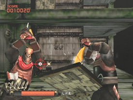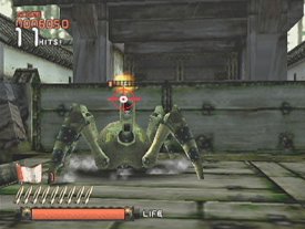 ![]() Kantig und hässlich, die Grafik von Ninja Assault macht nicht viel her! Was allerdings bei Ninja Assault ab geht ist unter aller Kanone! Zunächst hat man den Eindruck ein PSX Spiel eingelegt zu haben, da die Grafik wahnsinnig schlecht ist und der Sound wirklich weh tut, was noch mit der bereits durchlebten Zeit des Spiels entschuldigt werden könnte. Das Spiel bietet vier Spiele in einen, was zunächst recht glücklich macht und auch die Zugabe Bonus-Spiele stimmen einen jeden zufrieden. Ebenso der Multiplayer-Modus verspricht ein kleiner Wehrmutstropfen zu sein, da es immer genügend Gegner auf dem Bildschirm zu sehen gibt. Doch leider stößt nicht nur die Grafik sondern auch der ganze Hintergrund vom Spiel sauer auf! Die Story ist einfach nur lächerlich (Ninjas mit Pistolen bewaffnet gegen einen Shogun, um die Prinzessin aus dessen Klauen zu befreien?) und die Gegner sehen genau so wie die Charaktere, uninspiriert, klobig und nach letzter Generation aus. Da wären Bogenschützen, Magier oder Fußtruppen mit Schwertern bewaffnet, aber auch Urviecher, affenähnliches Getier oder künstliche Skelette – man merkt gleich, dass hier etwas nicht zusammen passt. Die Endbosse sind da weit aus mehr zu ertragen, doch sind Bewegungsabläufe auch hier etwas abgehackt und nicht schlüssig. Der Zweispielermodus wird für manche aber eine Überraschung bieten. Teilweise ist das Spiel so nämlich richtig spaßig, soweit man den Humor hat und alles als einen Witz ansehen kann. ![]() Auch mit Panzern muss man sich herumschlagen, ein Ninja hats eben nicht leicht! Trotz des kurz anhaltenden Charmes des spaßigen Zweispielermodus und dem großen Umfang, ist Ninja Assault jedoch kein guter Lightgun-Shooter, da es weder zeitgemäß ist, noch großen Aufwand in sich birgt! Mit anderen Shootern kann es sich zudem nicht messen. Ganz große Warnung und unbedingt Test spielen! Eine Ausnahme sollte nur ein niedriger Preis oder der treue Kumpel bieten.