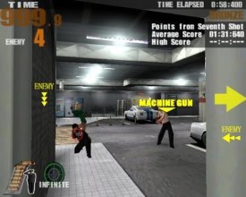 ![]() Trefft die rot markierten Flächen und entwaffnet die Verbrecher. Dieser Shooter bringt etwas Revolutionäres mit sich: die Verwendung der USB-Kamera! Wie in der Spielhalle wird durch die Kamera die Bewegung des Spielers registriert und auf den Bildschirm übertragen, so findet das in Deckung gehen und wieder hervorschnellen nicht mehr durch Tastendruck (wie bei Time Crisis) statt, sondern der Spieler agiert selbst mit ganzem Körpereinsatz (Deckung per Knopfdruck ist natürlich trotzdem möglich). Leider kommt das Spiel mit zwei dicken Mankos daher: Die EyeToy USB Kamera funktioniert mit dem Spiel nicht (anscheinend aber mit der Creative Video Blaster Webcam Plus und Medion Lifetec LT 9388) und es wird weder die G-Con45, noch die G-Con2 unterstützt, man muss sich also der ganz alten Lightguns bedienen (zum Glück wird der Normal Modus von jedem Drittherstellerprodukt unterstützt)! Die einzelnen Levels sind recht kurz, machen aber gewaltigen Spaß! Es gilt hierbei, sich durch ein Szenario zu schießen und zum Schluss einen Mafia-Boss der japanischen Triaden festzunehmen. Man kämpft sich dabei von Amerika bis nach Japan, als amerikanischer Cop, durch. Wenn man alle Bösewichte eingefangen hat, kann man den umgekehrten Weg nehmen und sich als japanischer Polizist durchschlagen. Zivilisten sollten dabei, genauso wie die Bösewichte, tunlichst verschont werden. Denn erschossen wird bei dem Spiel niemand, es wird lediglich die Waffe aus der Hand geschossen. Wird ein Passant oder man selbst doch mal erwischt, gibt es eine sehr coole, cineastische Slowmotion in Third-Person Ansicht und der Kill wird auf der Titelseite einer Zeitung angezeigt und mit einem Kommentar unterlegt! Grafisch bewegt sich das Spiel noch auf PSone Niveau, was hier aber nicht sonderlich aufstößt. Unglücklicherweise spielt sich das Spiel aber in 15 Minuten komplett durch (vor und zurück), da die Schwierigkeit zu niedrig angesetzt wurde und das Spiel einfach zu kurz ist. ![]() Auf Knopfdruck geht ihr vor den feindlichen Kugeln in Deckung, an dieser Stelle hinter der rechten Säule. Mir persönlich gefällt dieses Spiel trotzdem ganz besonders. Es hält zwar gerade den Durchschnitt, versprüht aber einen ganz besonderen Charme, der mir sehr zusagt.