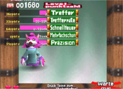 ![]() Spieler 1 darf nur die roten, Spieler 2 nur die blauen Geister treffen. Der Name verrät es schon: in diesem Spiel dreht sich alles um Ghouls bzw. um Geister. In diversen Minispielchen gilt es böse Geister, Spinnen oder Skelette abzuschießen. Die Aufgabenstellungen erinnern dabei stark an Point Blank. "Besiege alle auftauchenden roten Geister", "Erledige den Geist mit einem Schuss" oder "Zerstöre das Geisterauto mit 70 Schuss in 30 Sek.". Es gibt aber auch einige neue Ideen zu sehen, also auch für Kenner der Serie ist dieses Spiel geeignet. Eine Neuerung wären da zum Beispiel die Endgegner. Auf dem einfachsten der 3 anwählbaren Schwierigkeitsgrade trifft man nur auf einen der insgesamt 4 Bosse. Will man alle sehen so muss man den höchsten Level meistern. Die Obermotze treten jeweils nach 4 Minispielen gegen den Spieler an und verlangen euch einiges ab! Insgesamt eine nette Zugabe, denn die kleinen Spiele sind trotz alledem nicht so abwechslungsreich und unterhaltsam wie bei dem Vorbild Point Blank. Dafür ist die Präsentation umso besser! Nette Animationen, fetzige Musik und ansprechende Grafik verleihen dem Spiel ein ganz besonderes Flair. An Modi fehlt es auch nicht: ![]() Am Ende wird gnadenlos abgerechnet und es werden eure Stärken und Schwächen analysiert. Alles in allem ein solider Ballerspaß mit dem man einige freudige Stunden verbringen wird und den man zudem immer wieder zocken kann. Auf der höchsten Schwierigkeitsstufe ist das Spiel aber sehr fordernd, oftmals leider ein wenig zu sehr! Für Experten daher ebenso eine gute Wahl.