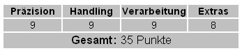 Eine Wertung von 30-35 Punkten verspricht ein gutes bis sehr gutes Spiel.