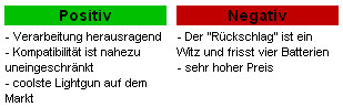 In der Kürze liegt die Würze, daher fasst ein kleiner Kasten die Dinge kurz zusammen, die uns positiv aber auch negativ aufgefallen sind.